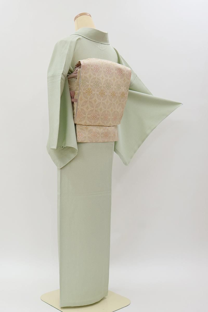 柳鼠色が近いでしょうか、穏やかな灰みの薄緑色系の単衣の江戸小紋です。