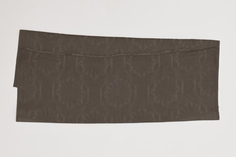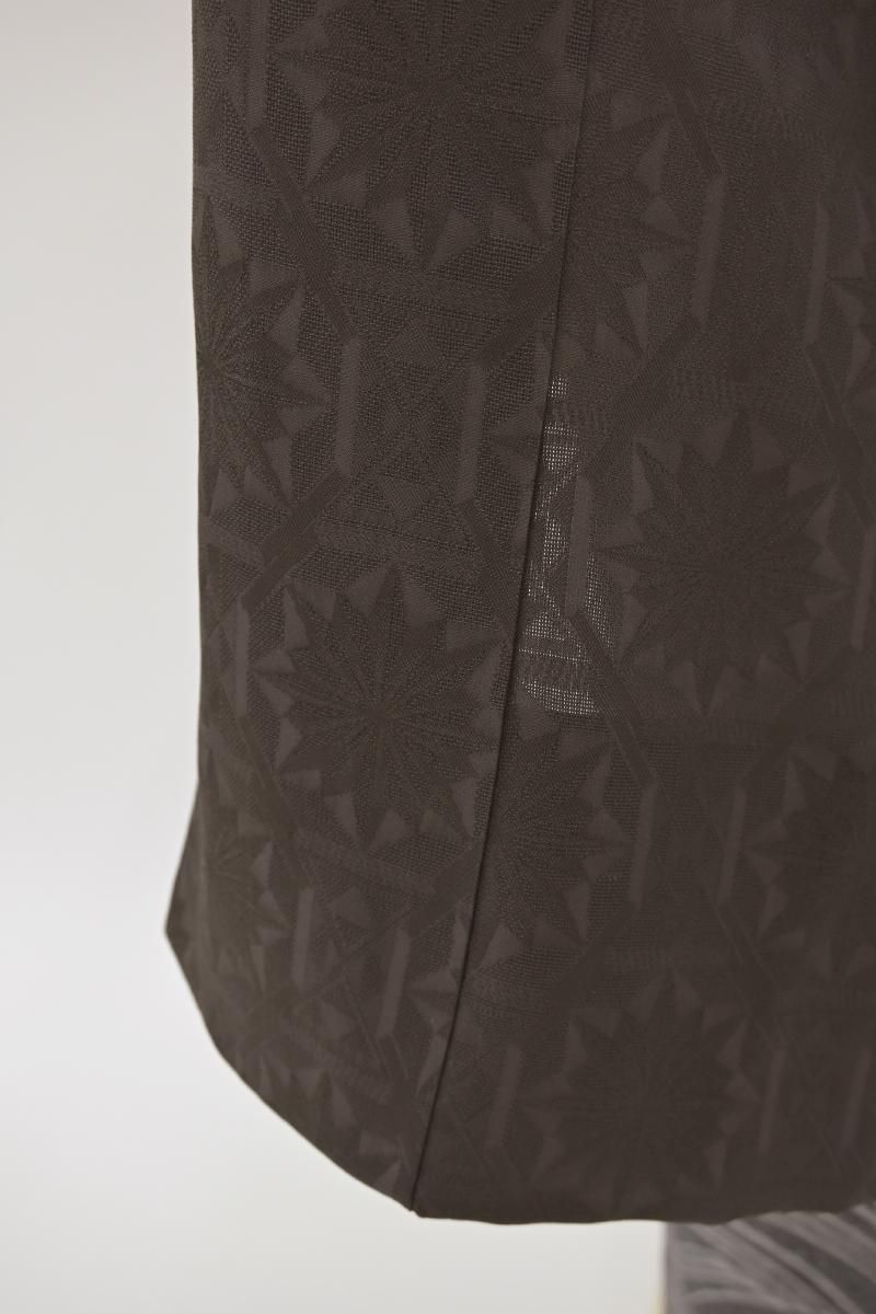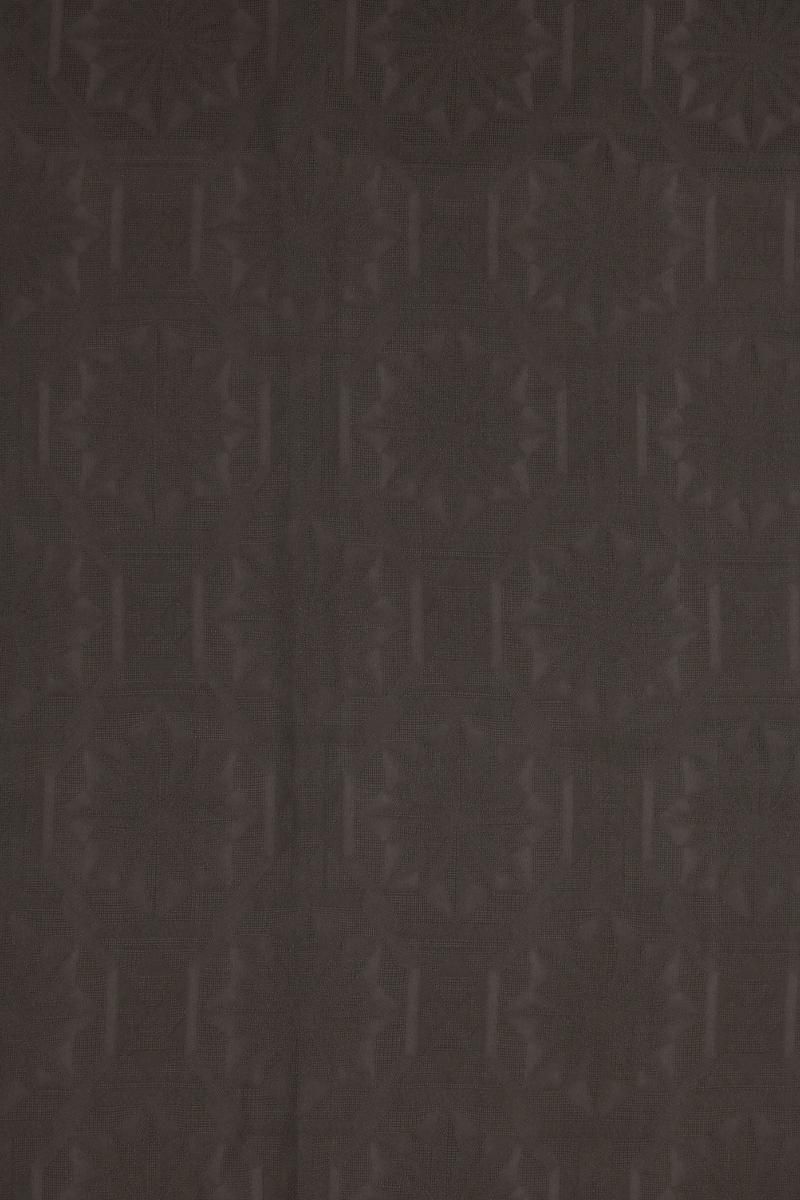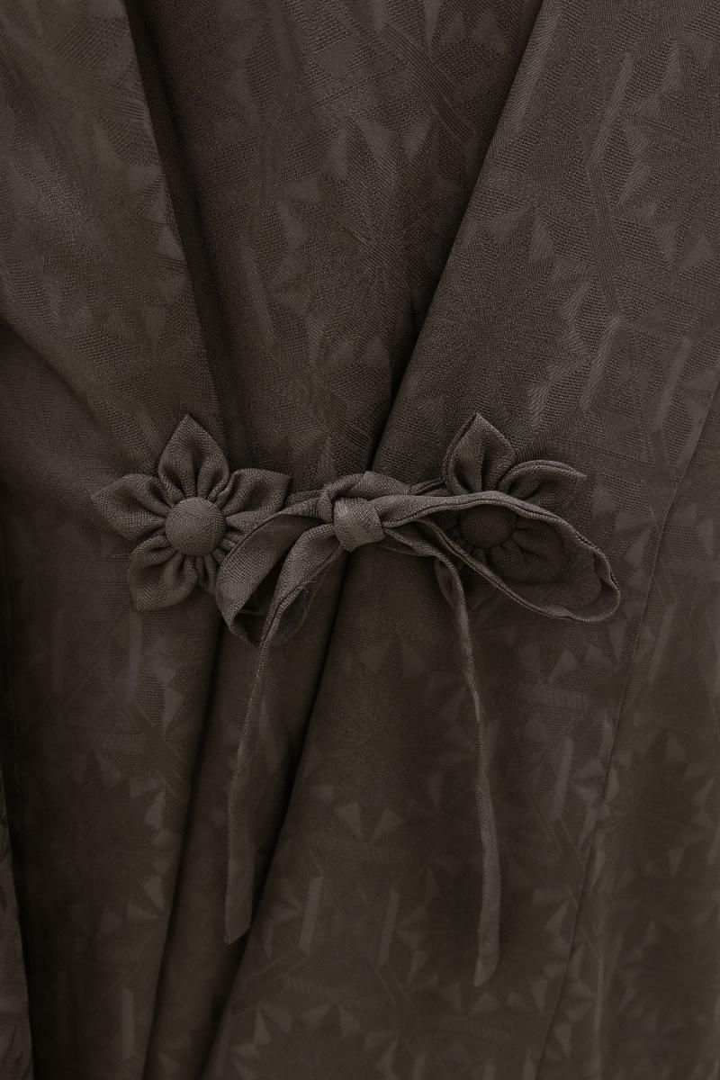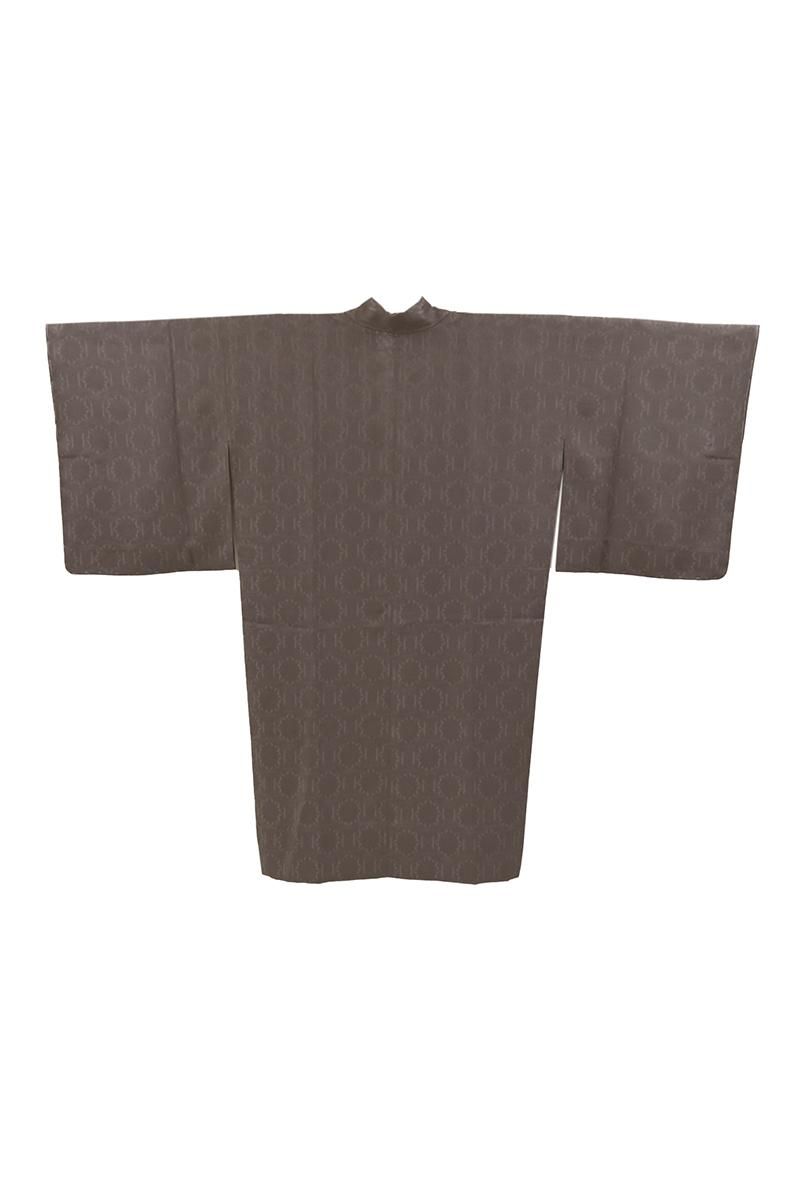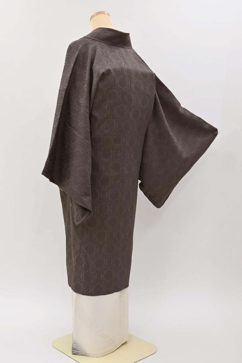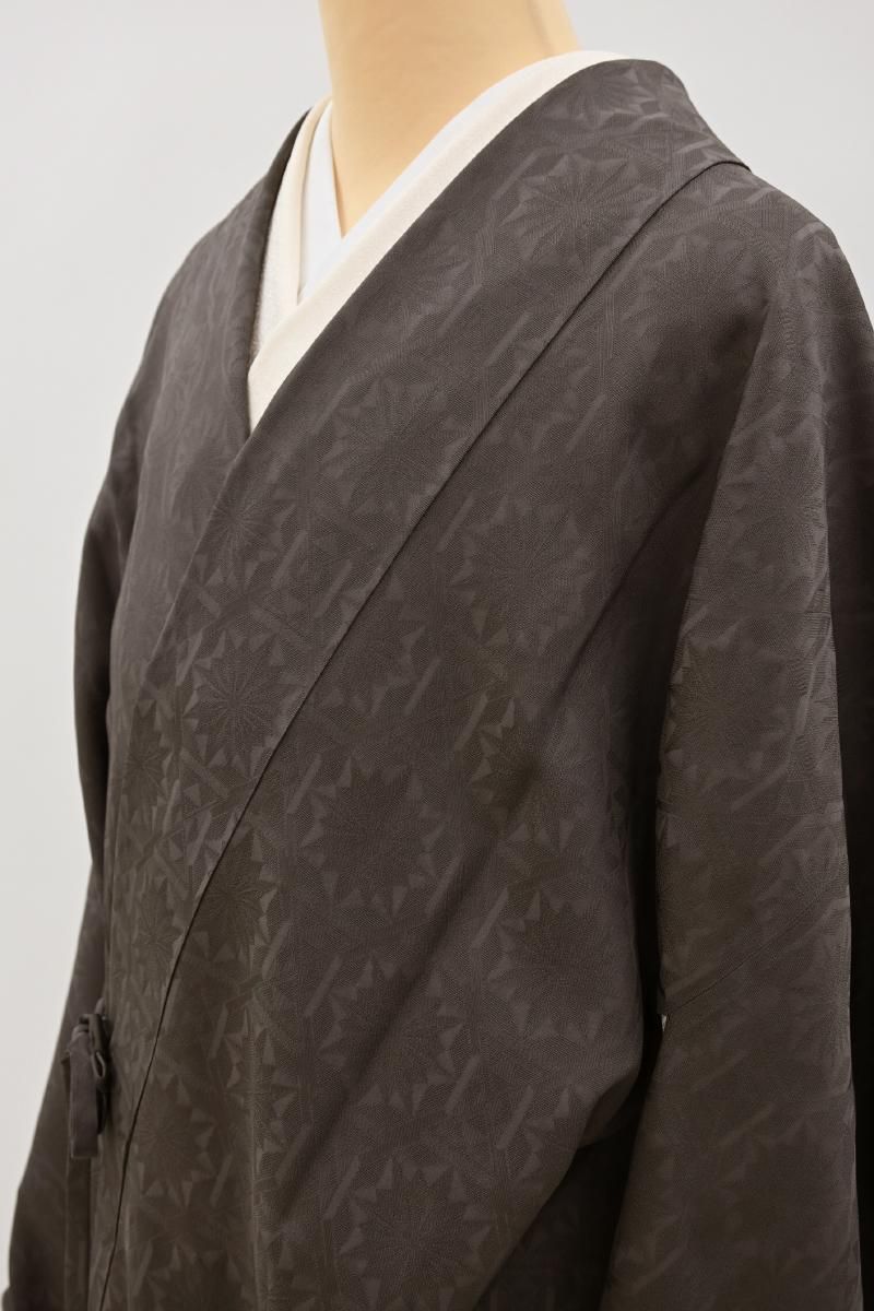 滅紫色が近いでしょうか、紫みを帯びた深いグレーの地に、八角に切子の地紋を配した紋紗の道中着です。落ち着いたお色目に浮かぶモダンな意匠が洗練された表情を創るこちらのお品、着物や帯を護る塵除けとしてはもちろん、装いの優美なアクセントとしても活躍してくれそうですね。透け感はやや控えめですので、春先から秋まで気候に合わせて長い期間お召しいただけることと思います。この機会にいかがでしょうか。