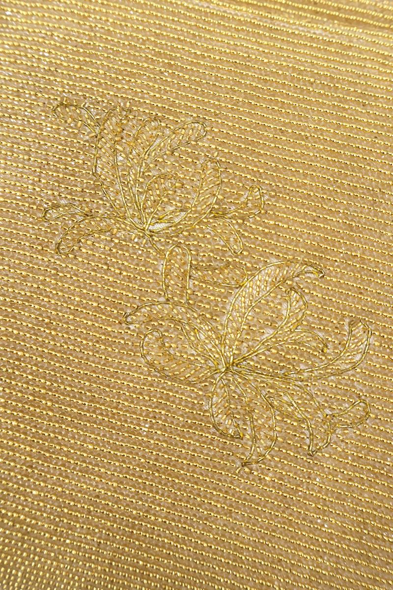 こちらはすっきりとしたフォルムに配された優美な意匠が格調高い雰囲気を醸し出すお品、金ビーズの輝く持ち手や金の金具も優雅さを演出していますね。バッグ内はサテン地でポケットは2つです。和装、洋装問わずパーティーシーンを華やかに盛り上げてくれそうですね。この機会にいかがでしょうか。