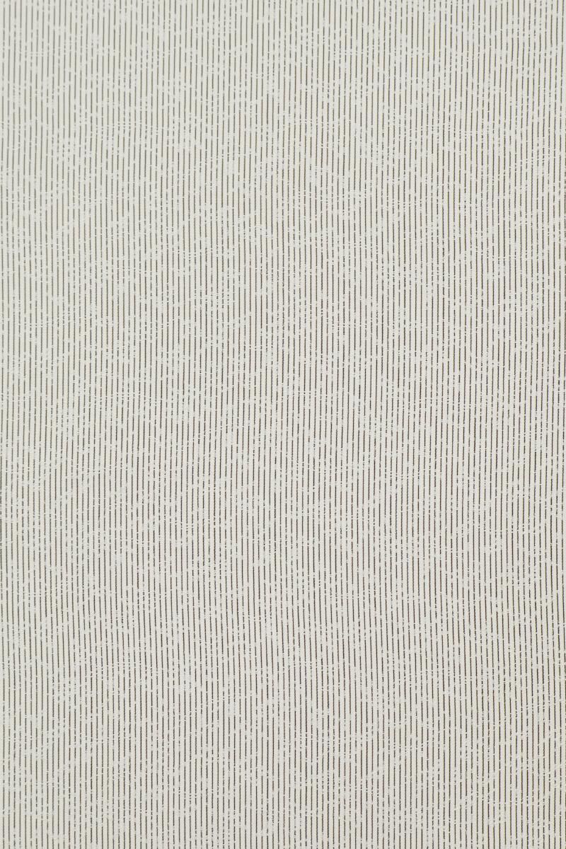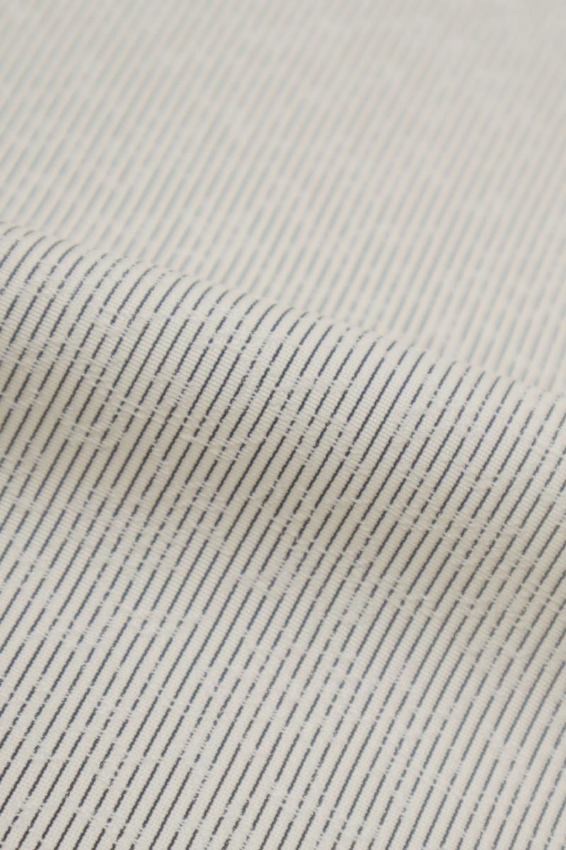 花唐草の地紋の浮かぶオフホワイトの地に、黒でほっそりとした竪縞を織り出した単衣の着物です。