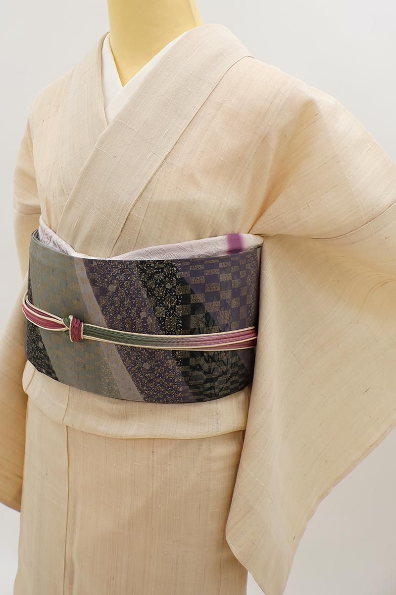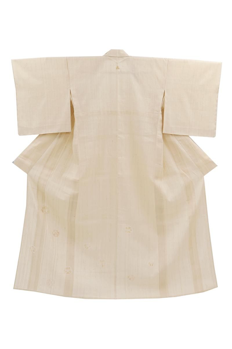 地色に溶け込むようなお色目で、陰影豊かに表された意匠が装いにさりげない愛らしさを添える一枚、所々に節の覗く野趣ある風合いに大人の洒落味が漂いますね。程よい張りを帯びたさっくりと薄手の地は、軽い透け感がありますので夏から単衣時期を通して気候に合わせて長くお召しいただけることと思います。観劇や集まりなど、これからの季節のお出かけにいかがでしょうか。