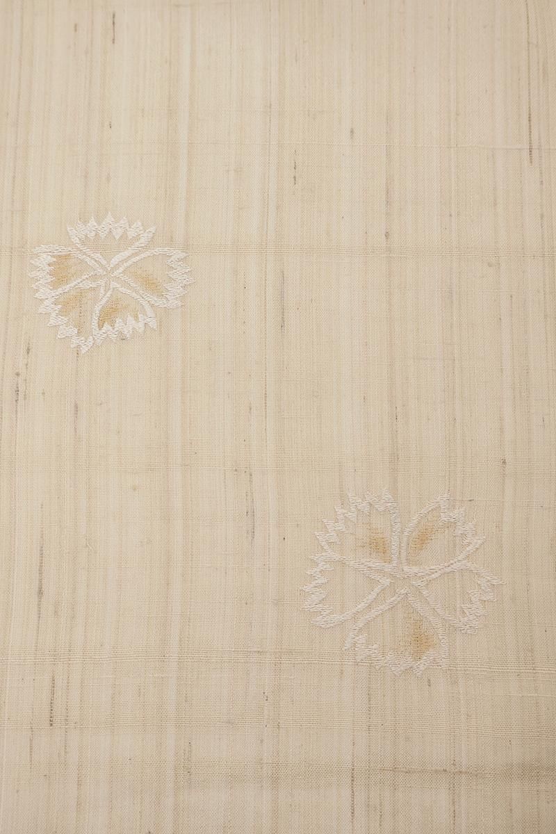 明度を上げた素色が近いでしょうか、ナチュラルな淡いベージュの紬地に撫子のモチーフを繍いであしらった単衣の付下げです。