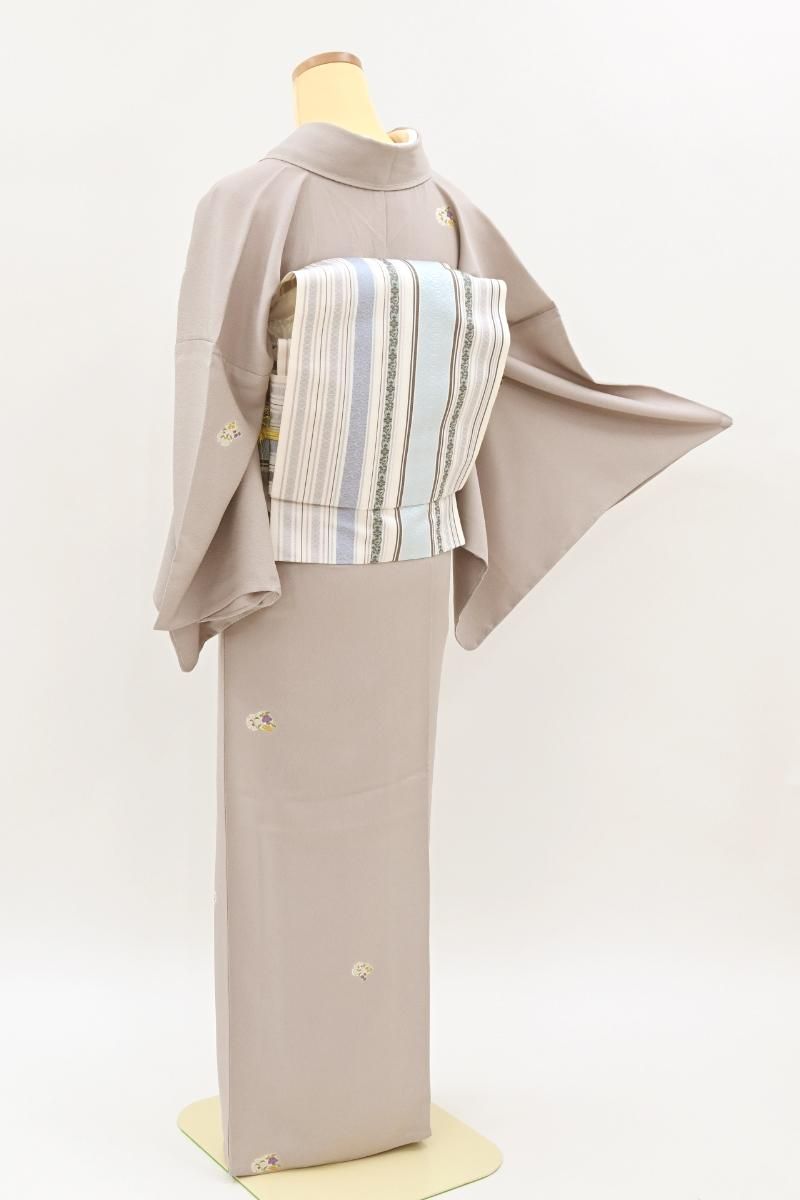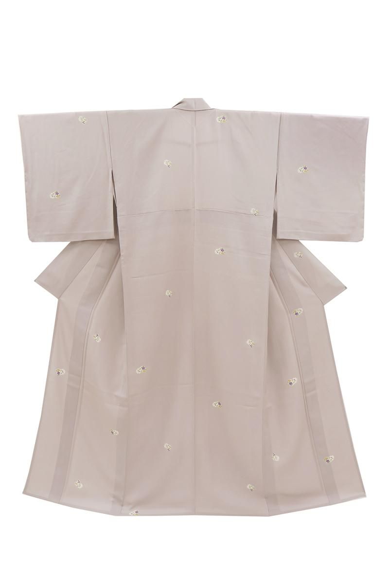 こちらは浅いしぼを帯びた地風に、品良く置かれた愛らしい意匠がしっとりとモダンな表情のお品、無地場を多めにとった飛び柄ですので季節の染め帯から袋帯まで帯合わせも幅広く、様々な場面に重宝しそうですね。お出かけやお稽古着に活躍してくれる一枚をこの機会にいかがでしょうか。
