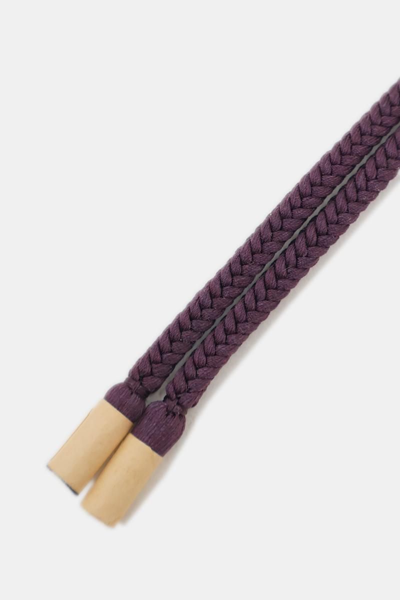 こちらは伸縮性に富んだとても使いやすい組み方です。お色目はごく深い紫色の無地。落ち着いたお色味で、一本ご用意頂くととても重宝にお使い頂けそうですね。組紐は道明でなくては、という方も多いかと存じます。きゅっと締まり緩まない、定評ある締め心地をどうぞお楽しみ下さいませ。