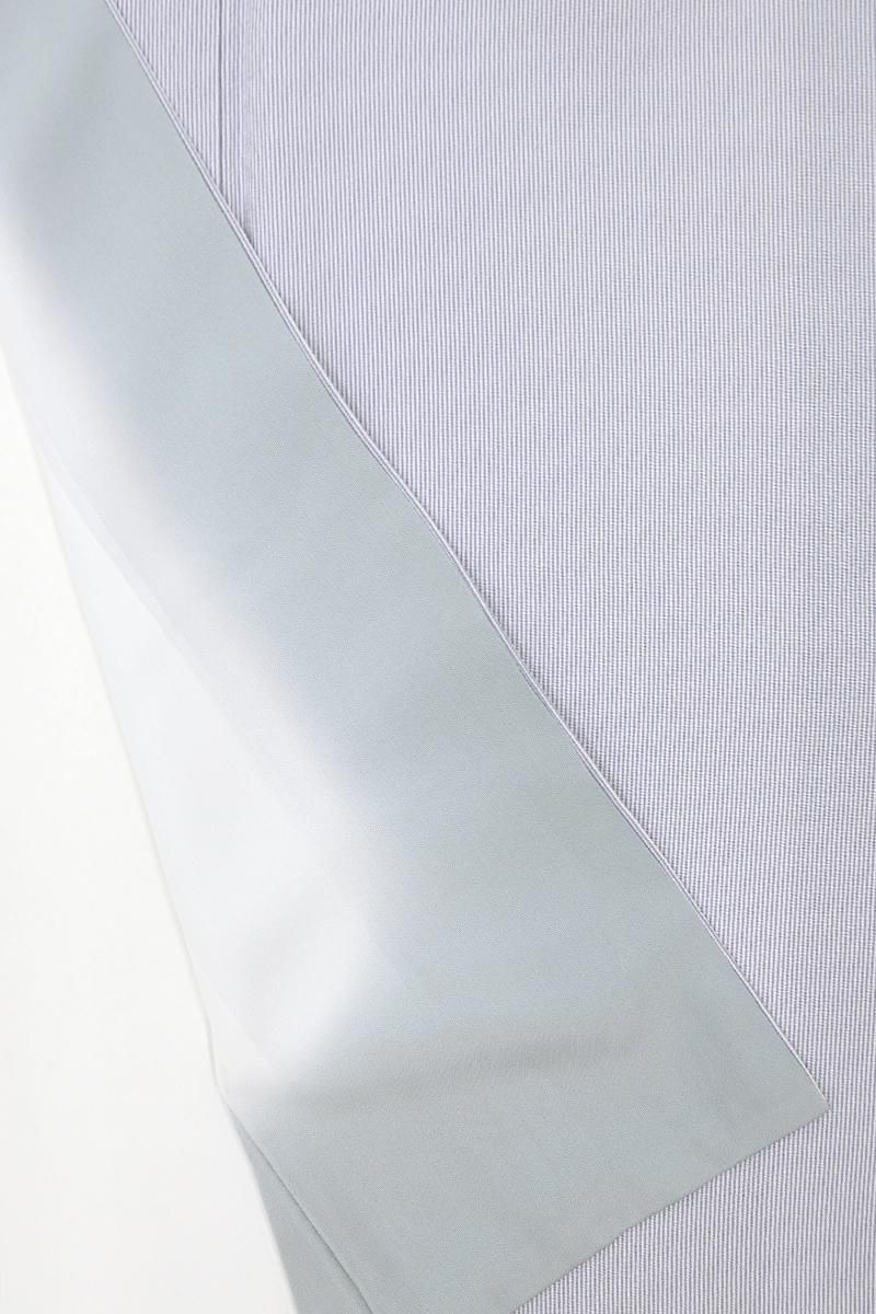 藤鼠色が近いでしょうか、灰みの淡い青紫色の地に万筋を染めた江戸小紋です。
