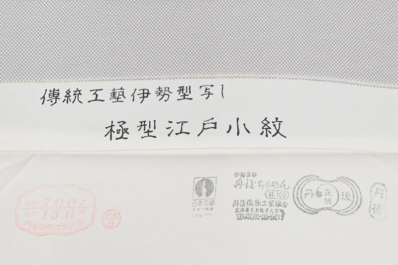 全体の印象としては絹鼠色が近いでしょうか、淡いグレーで行儀を染めた江戸小紋です。
