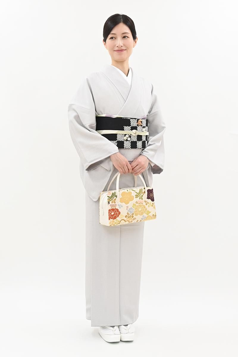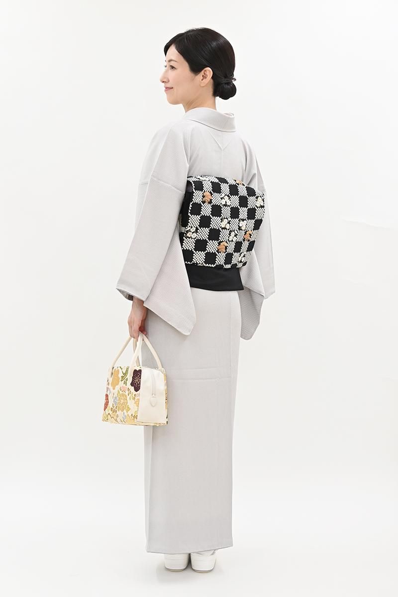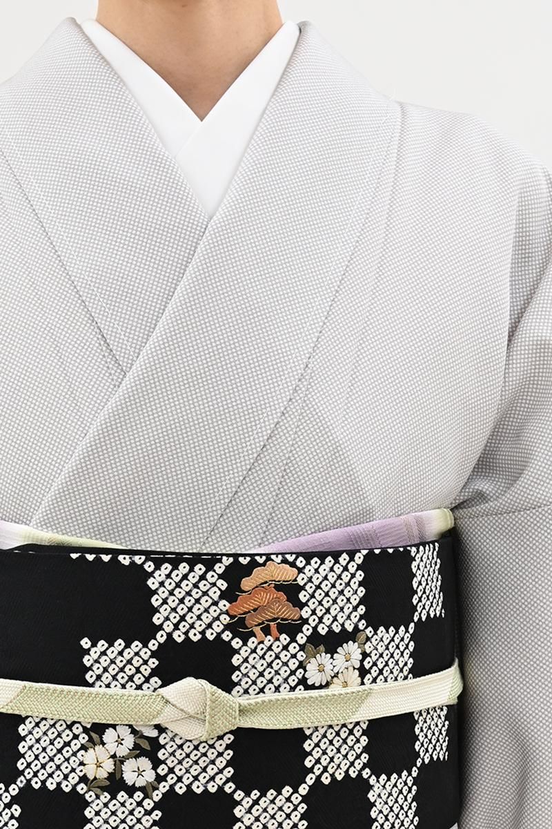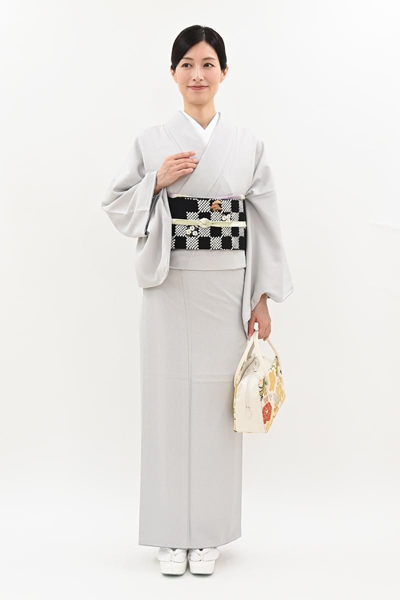 小紋三役のひとつである行儀は、江戸小紋の中でも格が高く人気のある柄ゆきです。こちらはすっきりとした落ち着いた印象のお色目が都会的で落ち着いた趣の一枚、紋は入っておりませんので季節の染め帯から格高の袋帯まで、合わせる帯次第で幅広い場面で活躍してくれそうですね。気軽なお出かけから少し改まったお席などに、洗練された装いをお楽しみくださいませ。