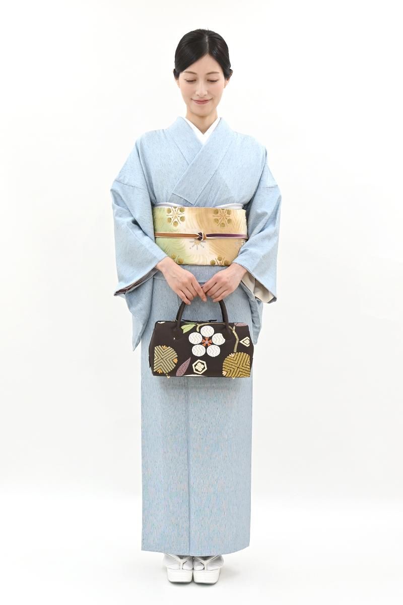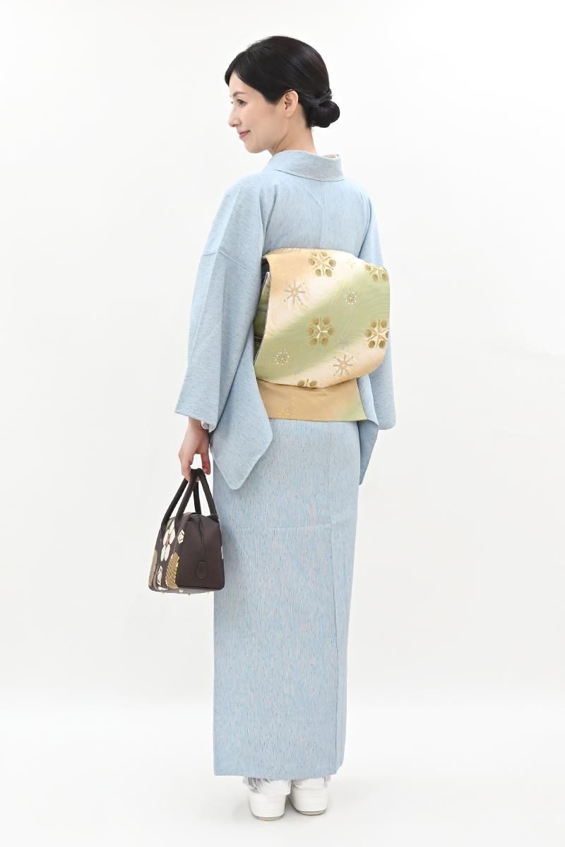 こちらは爽やかなお色目にゆらぎのあるお柄がやさしく調和したお品、少しくだけた雰囲気のお柄は江戸小紋らしい、小粋な表情を見せていますね。季節の染め帯から軽めの袋帯など、帯合わせ次第で様々な装いをお楽しみ頂ける事と思います。この機会にいかがでしょうか。