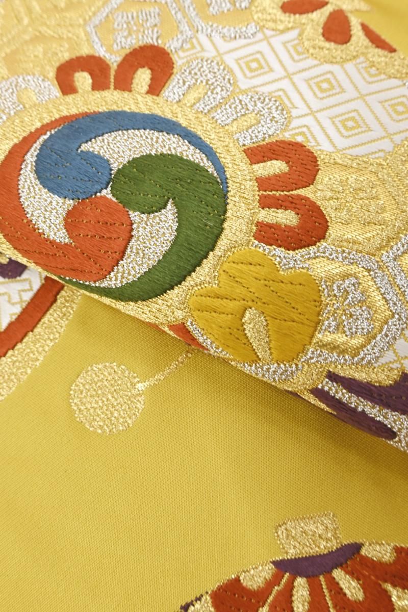 こちらは百数年の歴史を持つ京都の老舗機屋•洛陽織物製のお品、金銀糸をたっぷりと用いて彩り豊かに表現された愛らしいモチーフが晴れやかな日の装いを明るく盛り立ててくれそうですね。唐織ならではの甘撚りの絹糸の光沢も美しい上質な一本、紋付きの色無地や訪問着、振袖に合わせて、成人式やお祝いのお席、華やかなパーティなどにいかがでしょうか。