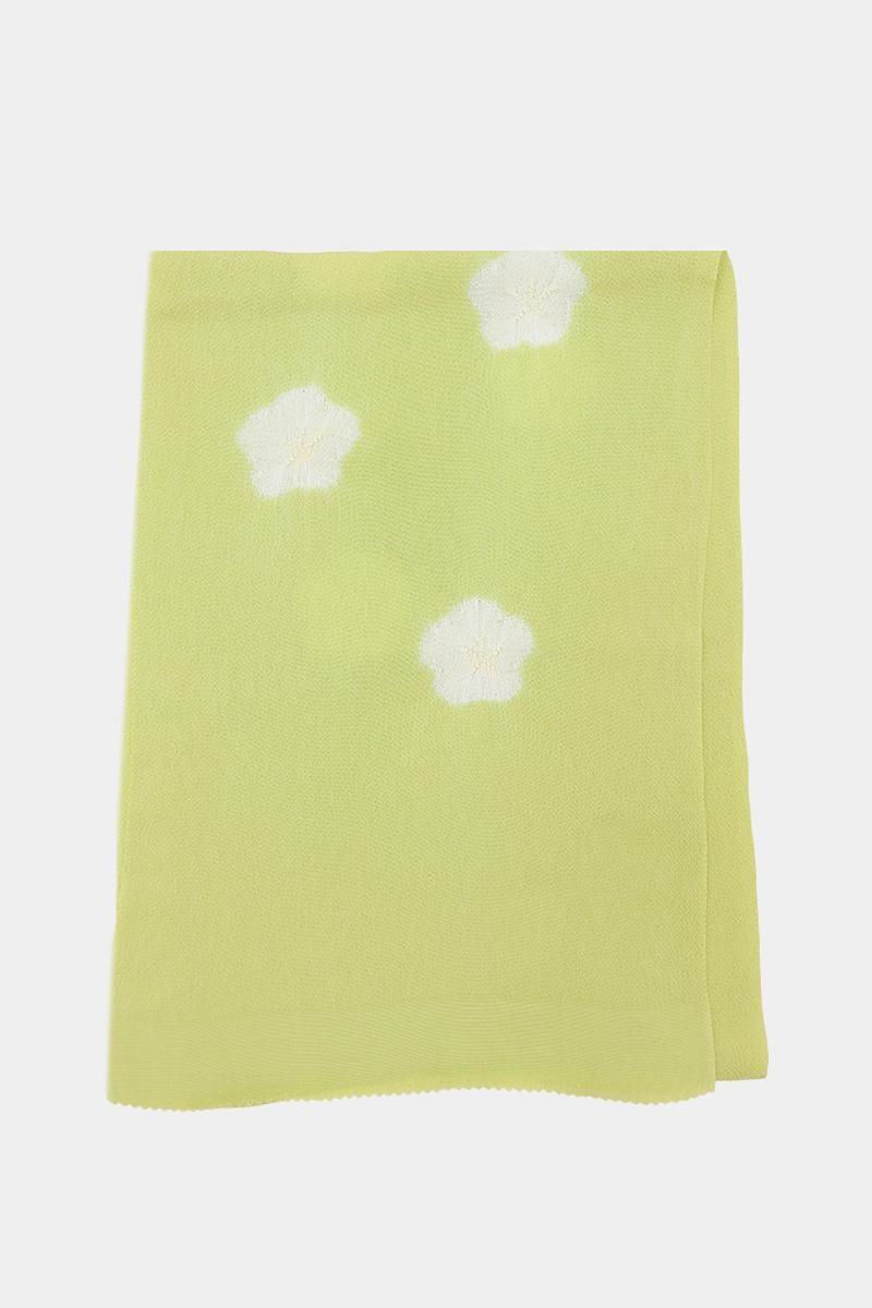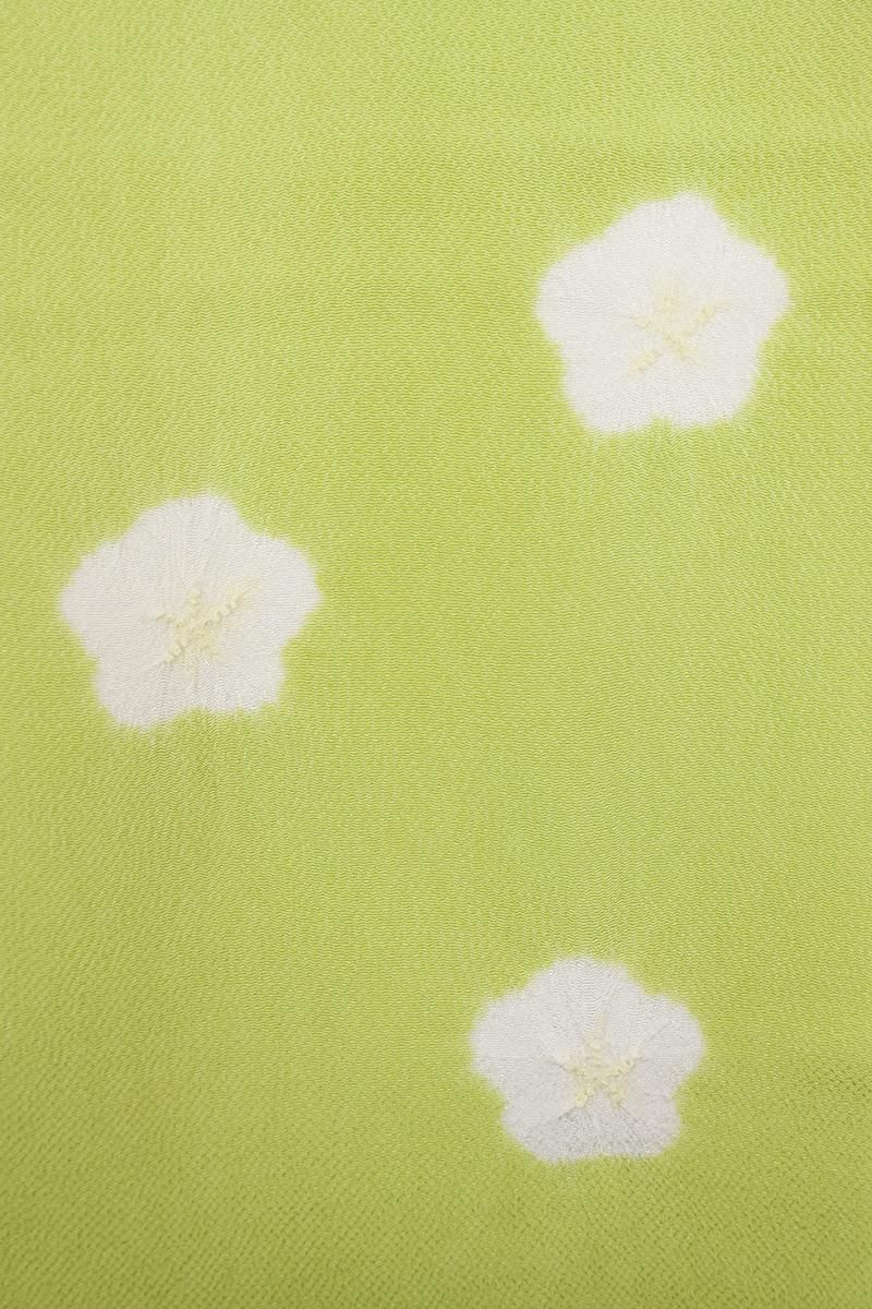 お色目は若々しい黄緑色を背景に、はっきりと映える白色の取り合わせ。紬や小紋などに合わせて、飛び絞りならではのはんなりとしたかわいらしさをお楽しみ下さいませ。