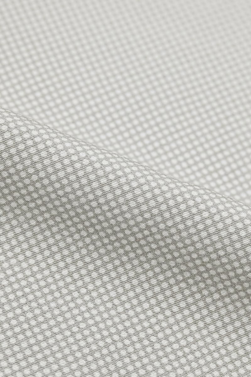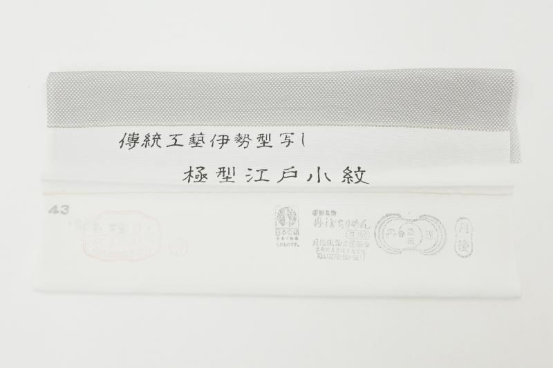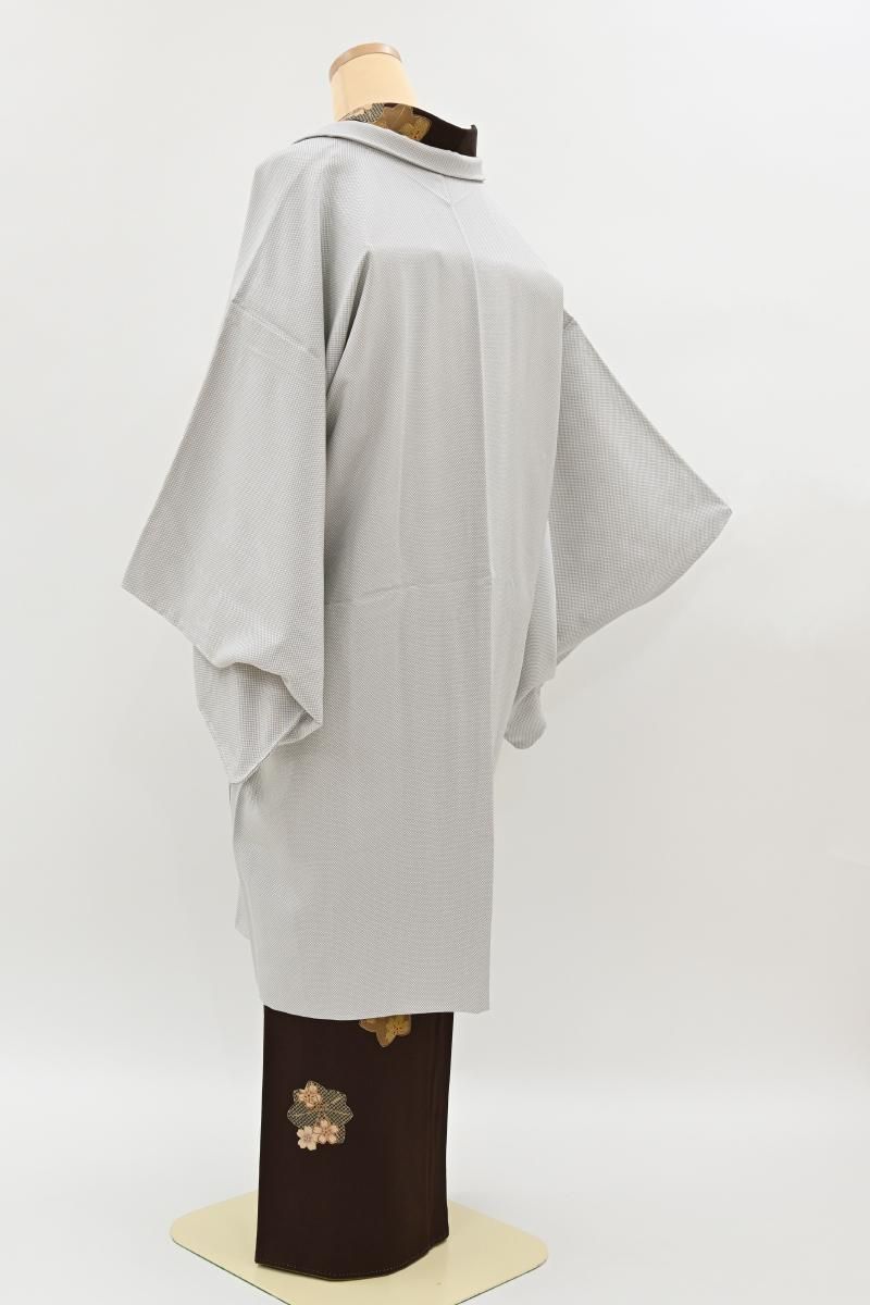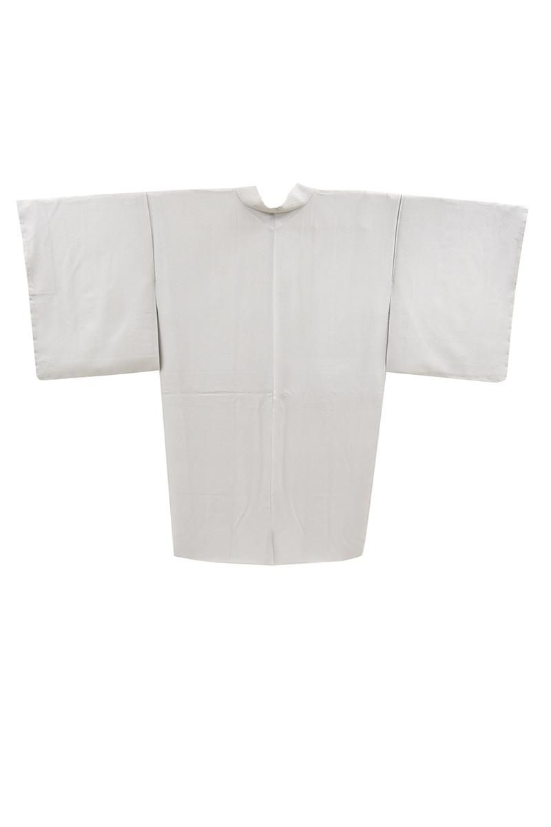 ぐっと色を薄めた鳩羽鼠色が近いでしょうか、薄グレーの地に行儀を染めた羽織です。