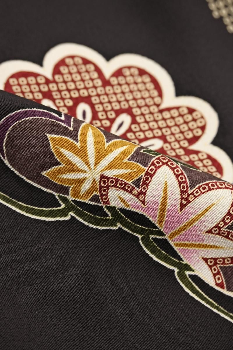 シックなお色目に映える愛らしい意匠が装いに大人の愛らしさを添える一枚、モダンな華の香る柄ゆきは着る方の年代も幅広く、普段の装いからちょっとしたお出かけまで様々な場面にお召し頂けそうですね。ぜひこの機会にいかがでしょうか。