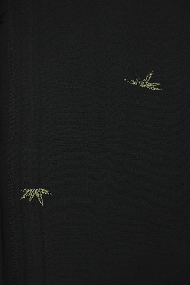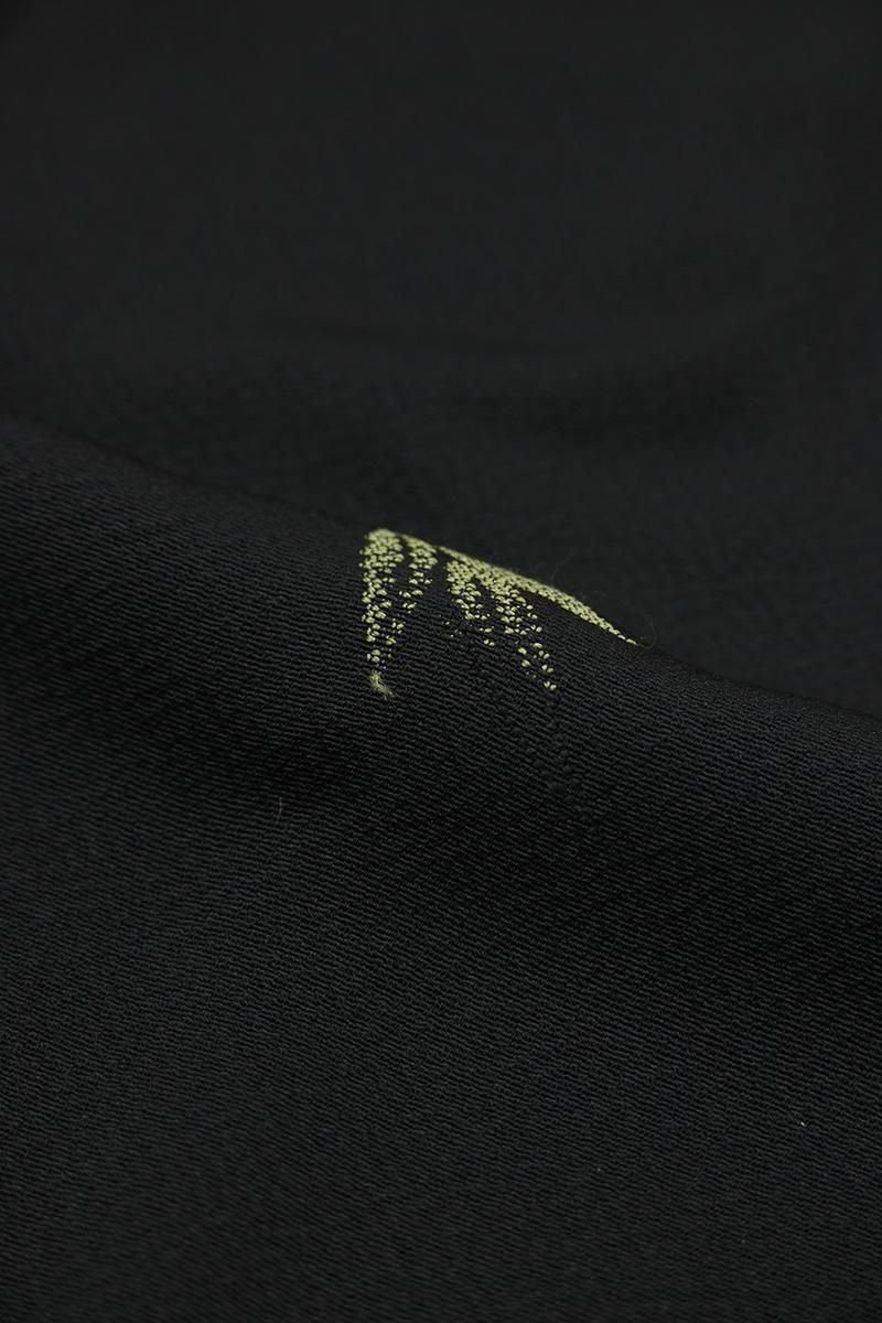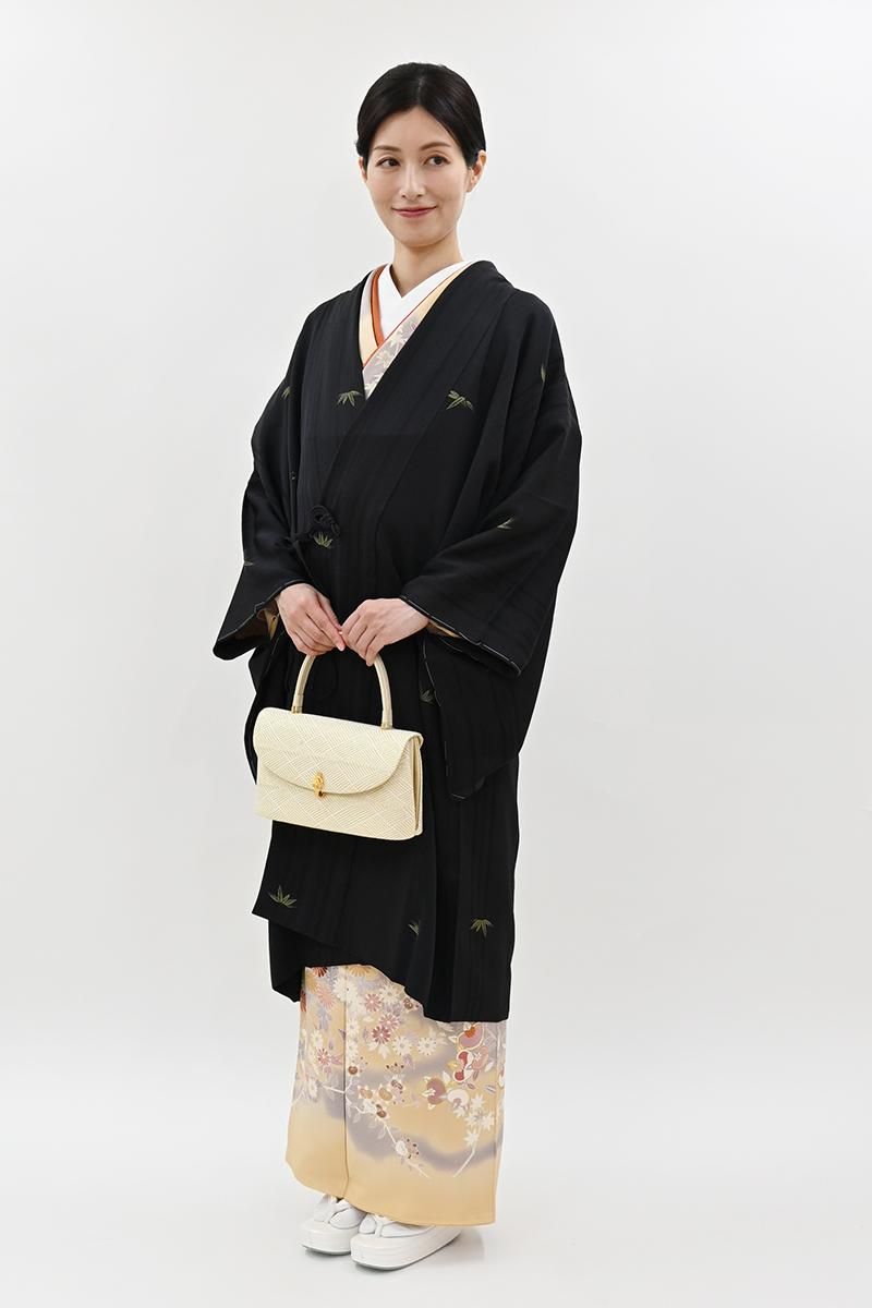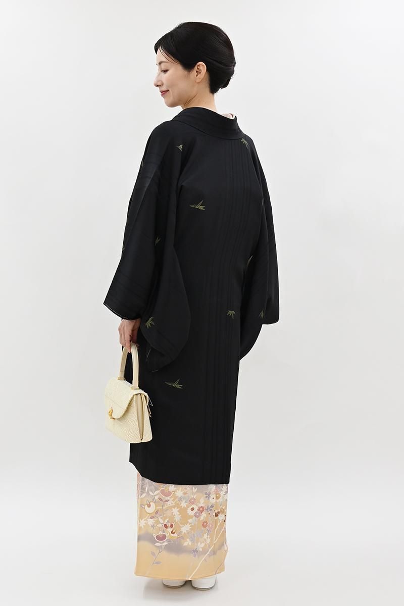黒色の地に、すらりと伸びる笹竹の図を配した道中着です。