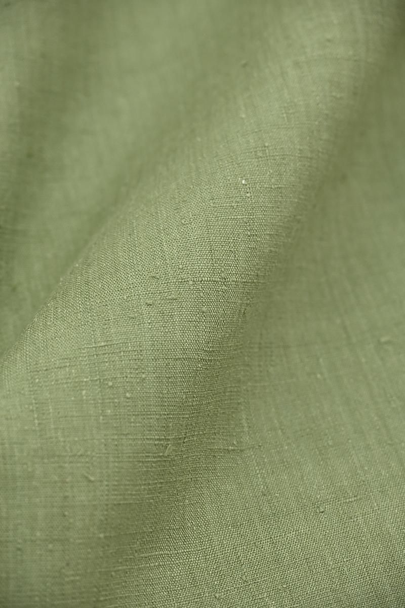 青丹色が近いでしょうか。灰みを帯びた鈍く枯れた黄緑系の無地の紬です。こちらは経糸緯糸共に真綿から時間をかけて手で引き出した糸を用い、高機で織り上げられた本場結城紬のお品。全て手仕事による幾多の工程を経て生まれる最高峰の紬ならではの、真綿の特質をそのまま残したふっくらと柔らかく優しい着心地は、たくさんの方々の手間暇惜しまぬお仕事が積み重ねられてこその恩恵です。上質な無地紬は合わせる帯次第で街着から少し改まった日の装いまで着用の機会も多く、現代ではワードローブに欠かせない一枚となっていますね。出番の多い着物だけに糸質や織り、着心地などにも拘りたいものですが、本場結城紬ならばきっとどなたにもご満足頂けるのではないでしょうか。お召しになる方や年齢を選ばず、長くご愛用頂ける落ち着いたお色目の一点、お探しの方、この機会にいかがでしょうか。