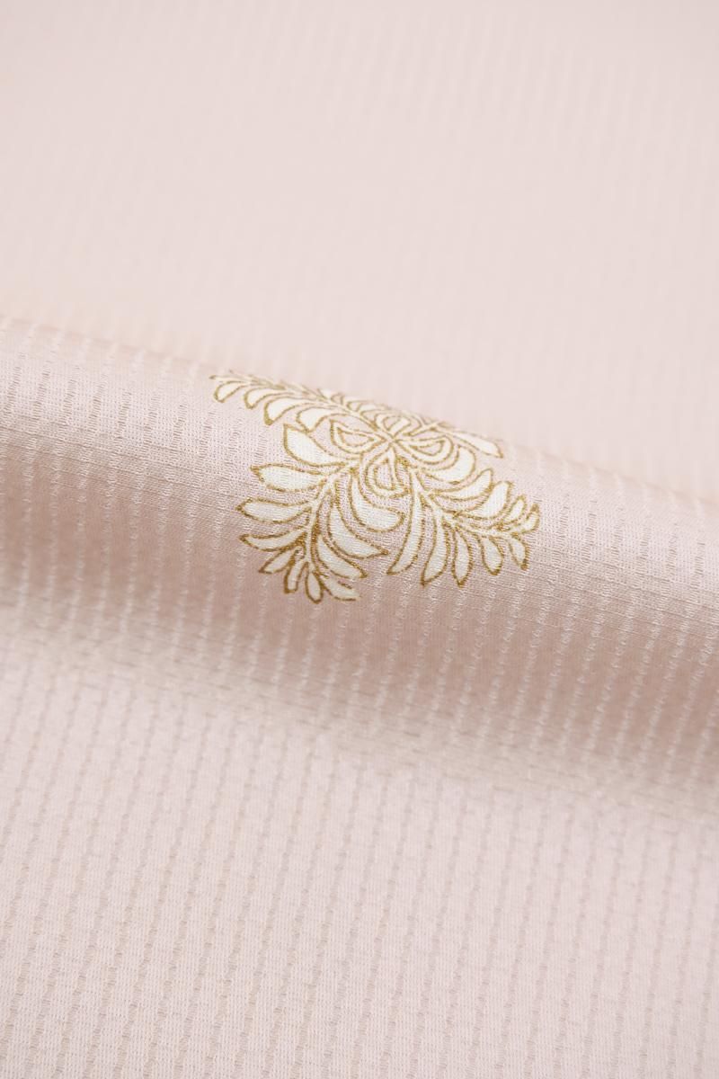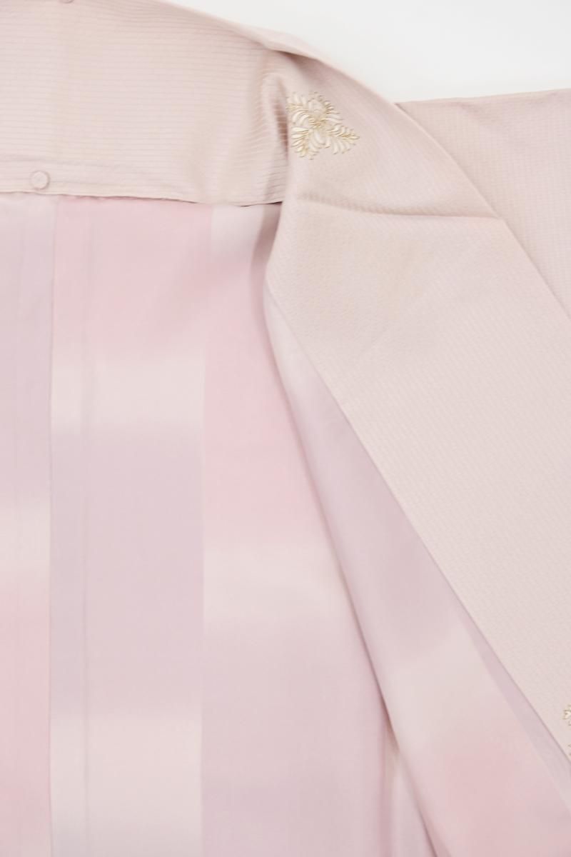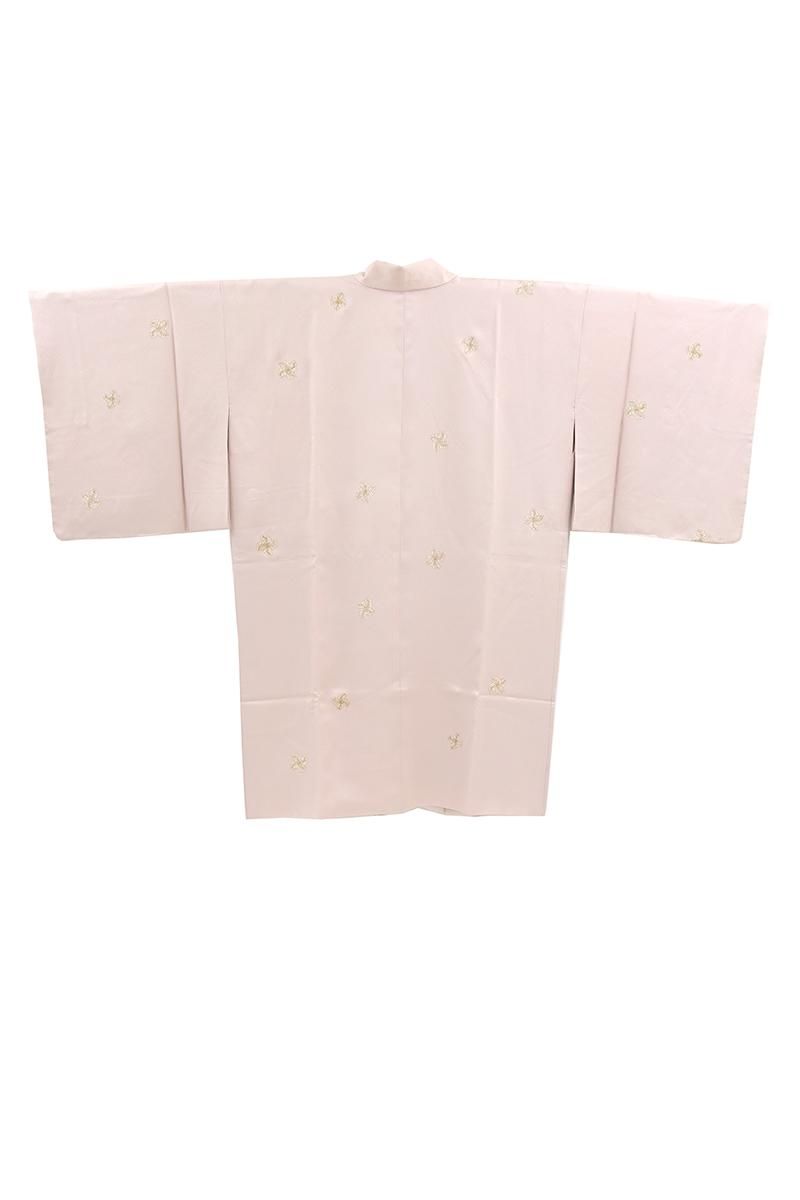 灰みを含んだ淡いピンク色の地に、植物文を散らした道中着です。