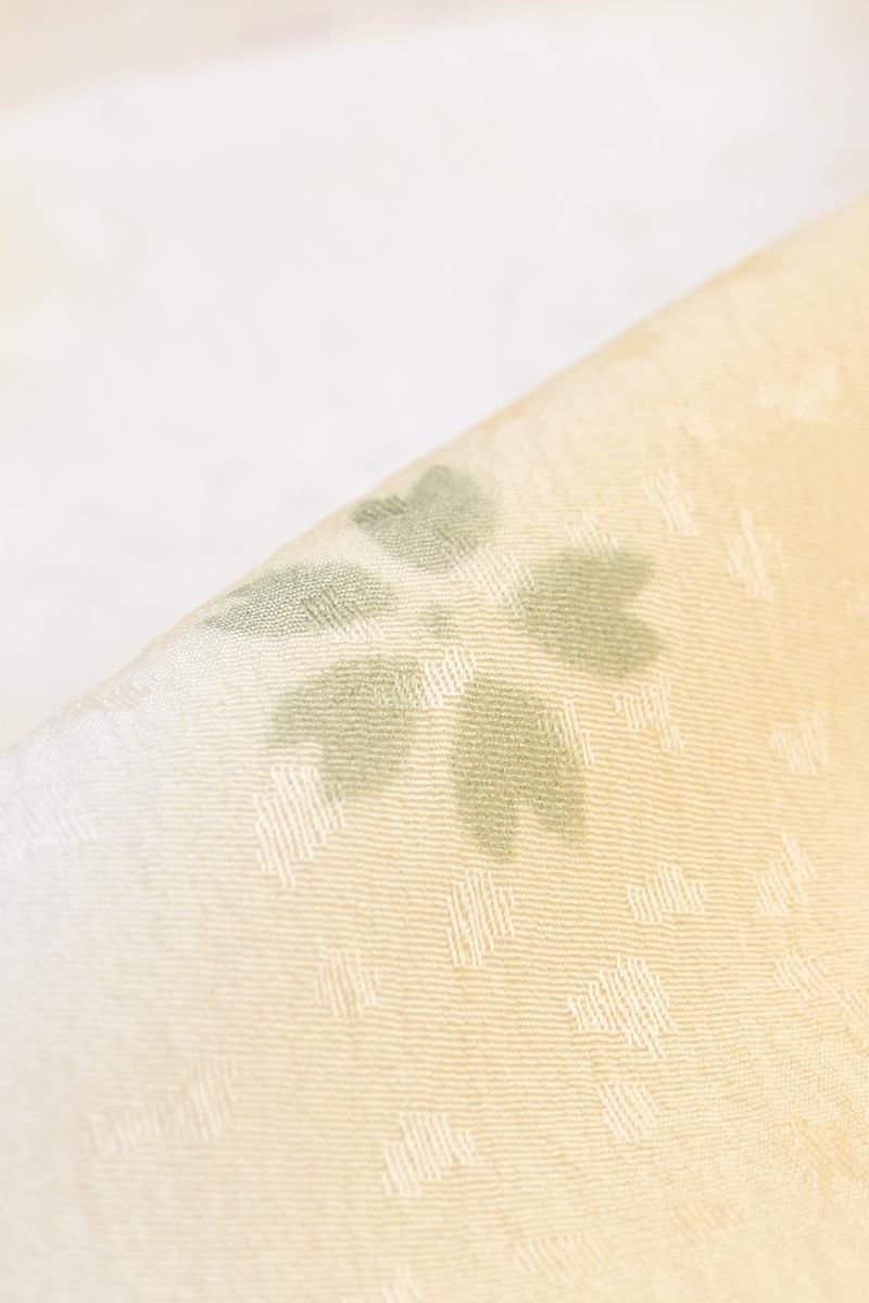 こちらは光沢のあるさらりとした風合いで肌当たりの良いお品、全体の淡いトーンに女性らしい柔らかさを感じる一枚ですね。着物の振りから見せる柔和な表情はいつもの装いに華を添えてくれることと思います。この機会にいかがでしょうか。