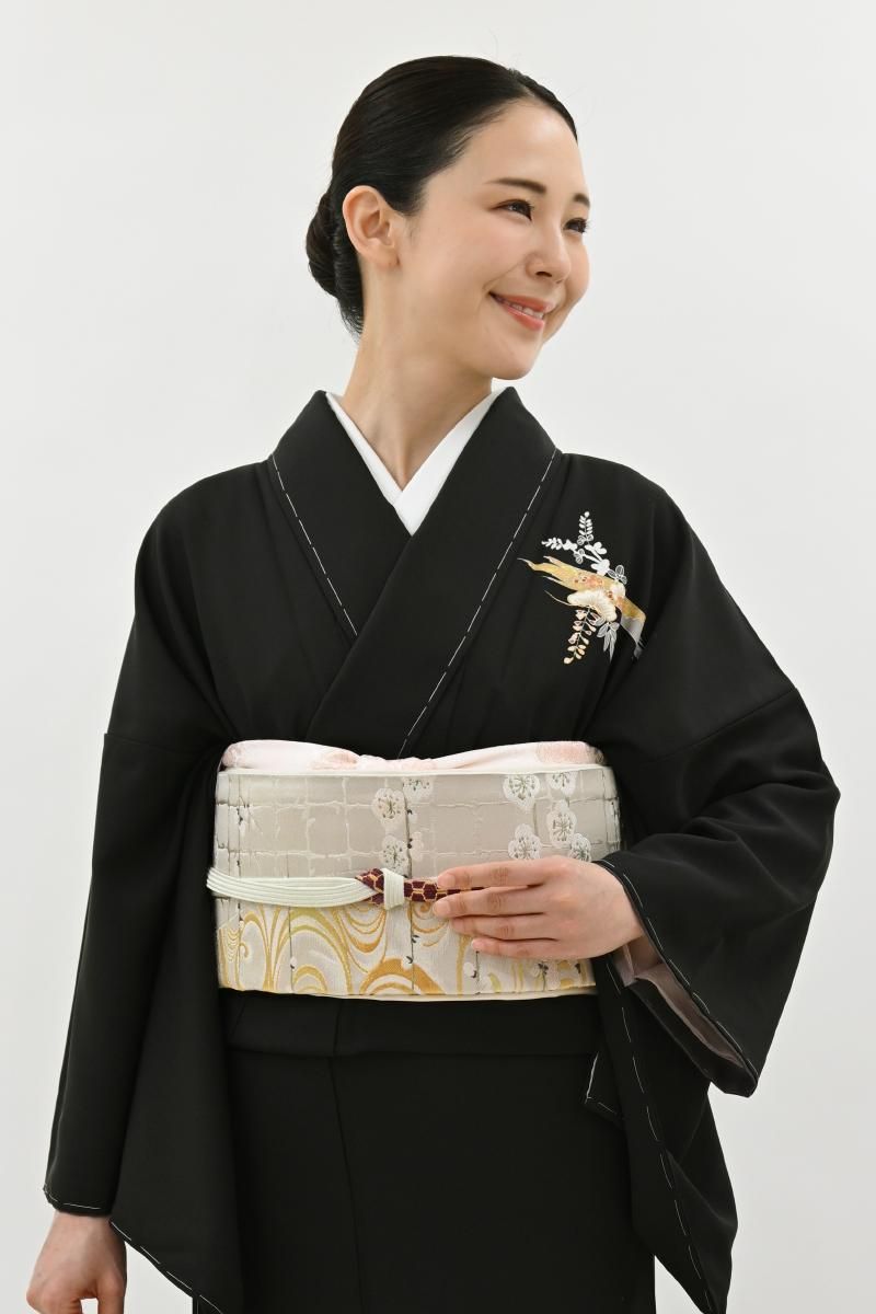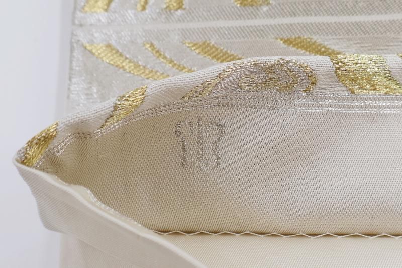 こちらは西陣を代表する老舗機屋・川島織物さんの作。上質な素材と確かな技術から生まれる本袋帯は、そのしなやかな締め心地とお太鼓のかたちの美しさでも定評がありますね。金を主調としてラメ糸の煌めきを添えて表現された風雅な意匠が女性らしい品良い甘さと高い格調を備え、晴れやかな日の装いを盛り立ててくれることと思います。色無地から付下げ、訪問着などに合わせて、季節の風情薫る装いをいかがでしょうか。
