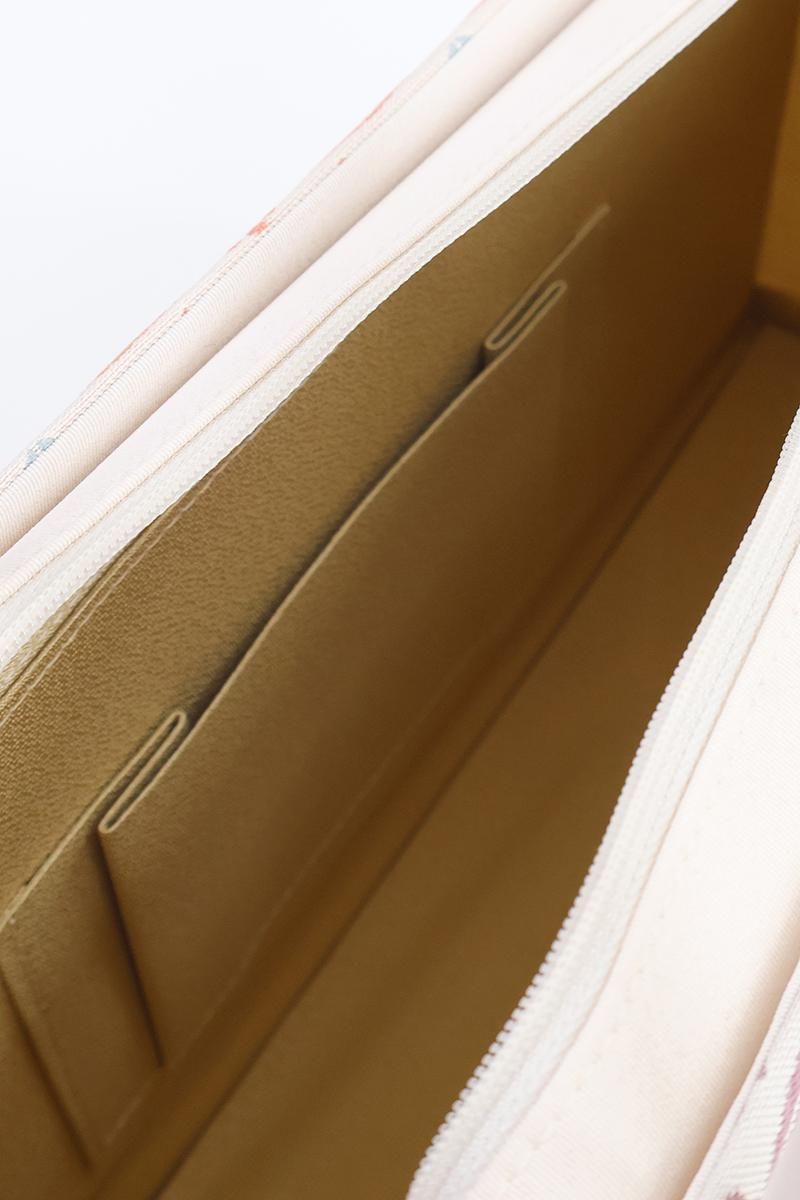 どことなく欧風で優しい表情のこちらは、装いにも女性らしい優美さを添えてくれそうですね。外側に大きなポケットが2つと内側に小さなポケットが1つ付いていますので使用感も良く、外出の際には重宝することと思います。あらかじめ生地に施されたガード加工や底鋲など細かな点に光る気配りも嬉しいですね。とっておきの帯から国内の熟練の職人さんが仕立てた贅沢な利休バッグ、この機会にぜひお手に取ってご覧くださいませ。